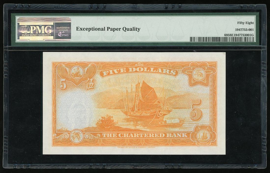 The Chartered Bank, $5, ND(1967), serial number T/F0594571, (Pick 69), PMG 58EPQ.