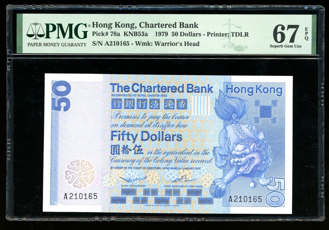 1979年渣打銀行伍拾圓,編號A210165,PMG 67EPQ