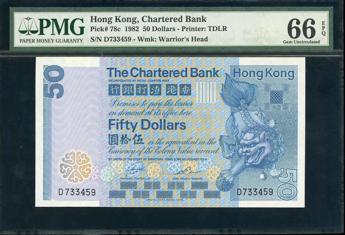 1982年渣打銀行伍拾圓,編號D733459,PMG 66EPQ