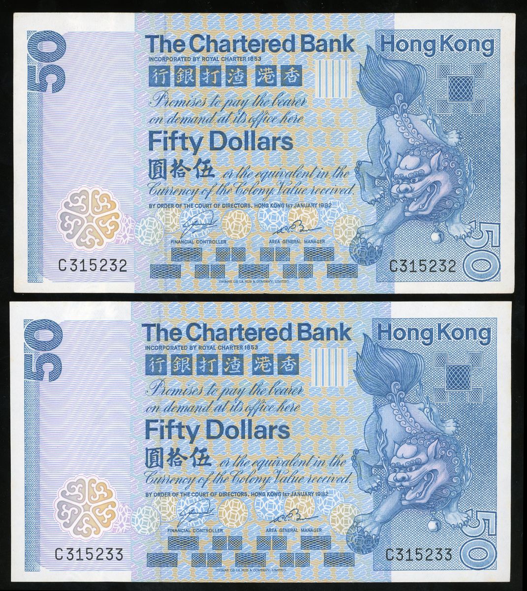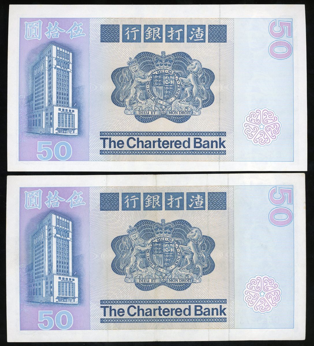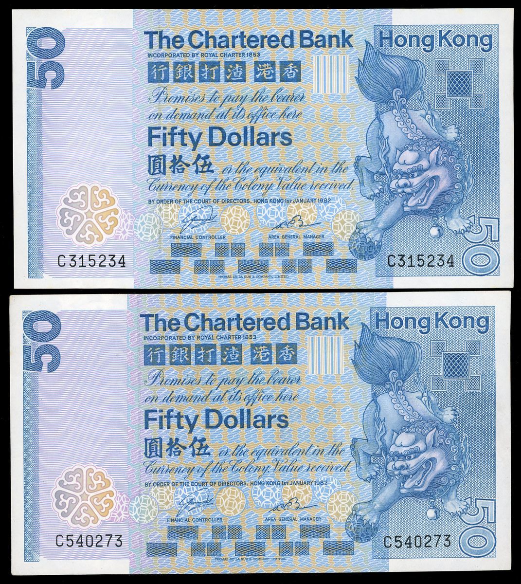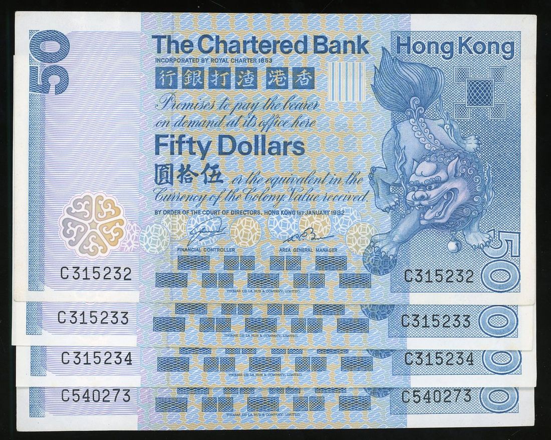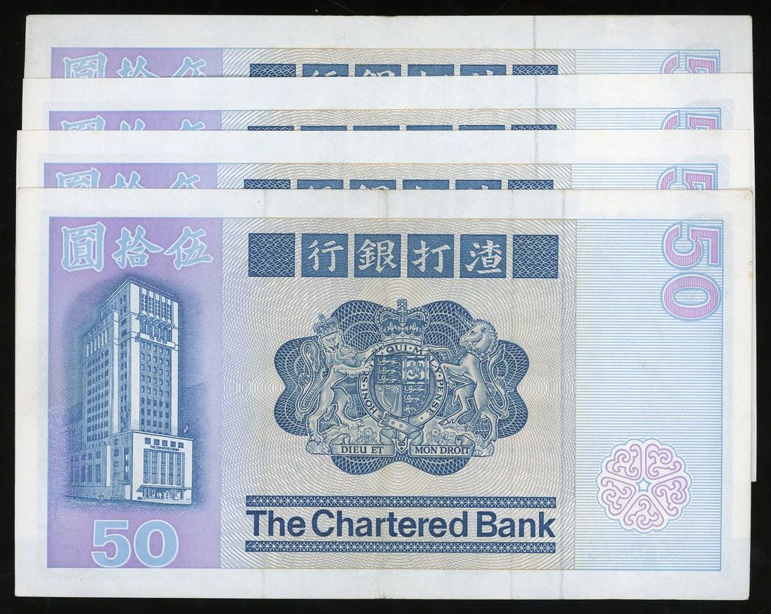 Chartered Bank, Hong Kong, $50 (4), 1982, serial number C315232-234, C540273, (Pick 78c), balance extremely fine to about uncirculated (4)