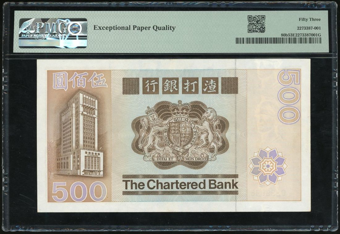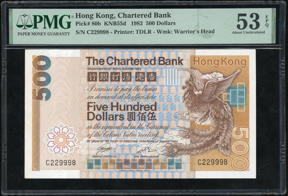1982年渣打銀行伍佰圓,編號C229998,PMG 53EPQ