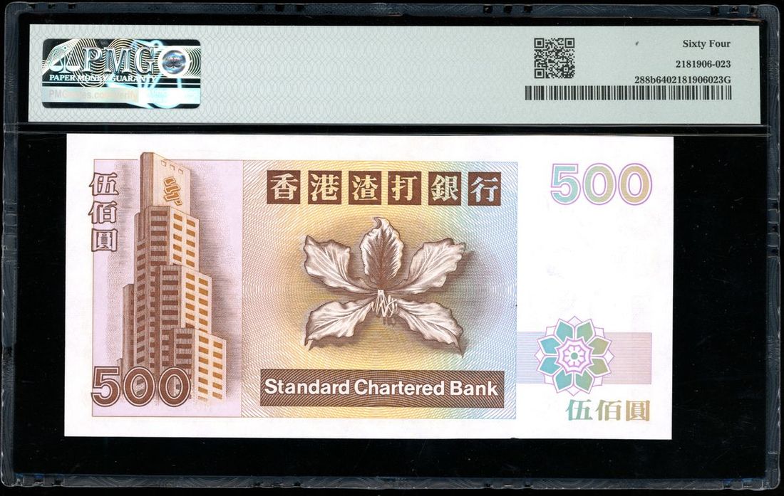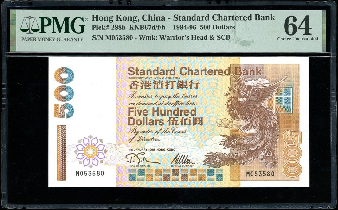 Standard Chartered Bank, Hong Kong, 500 dollars, 1.1.1995, serial number M053580, (Pick 288b), PMG 64 Choice Uncirculated