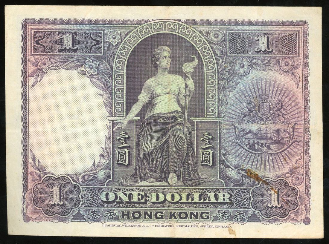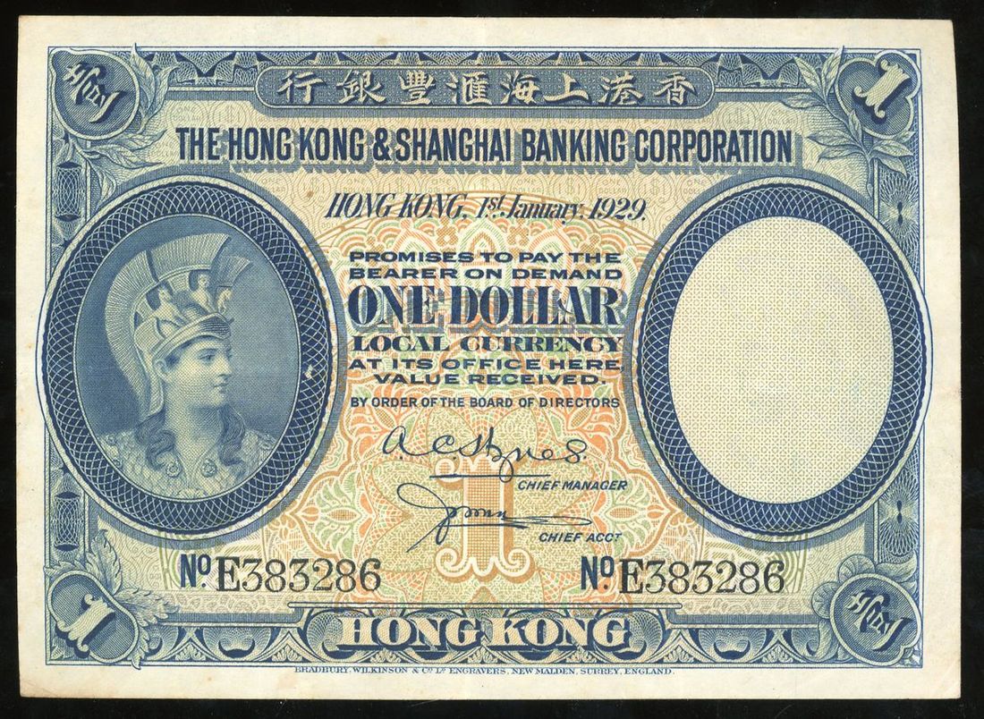 Hong Kong & Shanghai Banking Corporation, $1, 1 January 1929, serial number E383286, (Pick 172b), residue at reverse, very fine