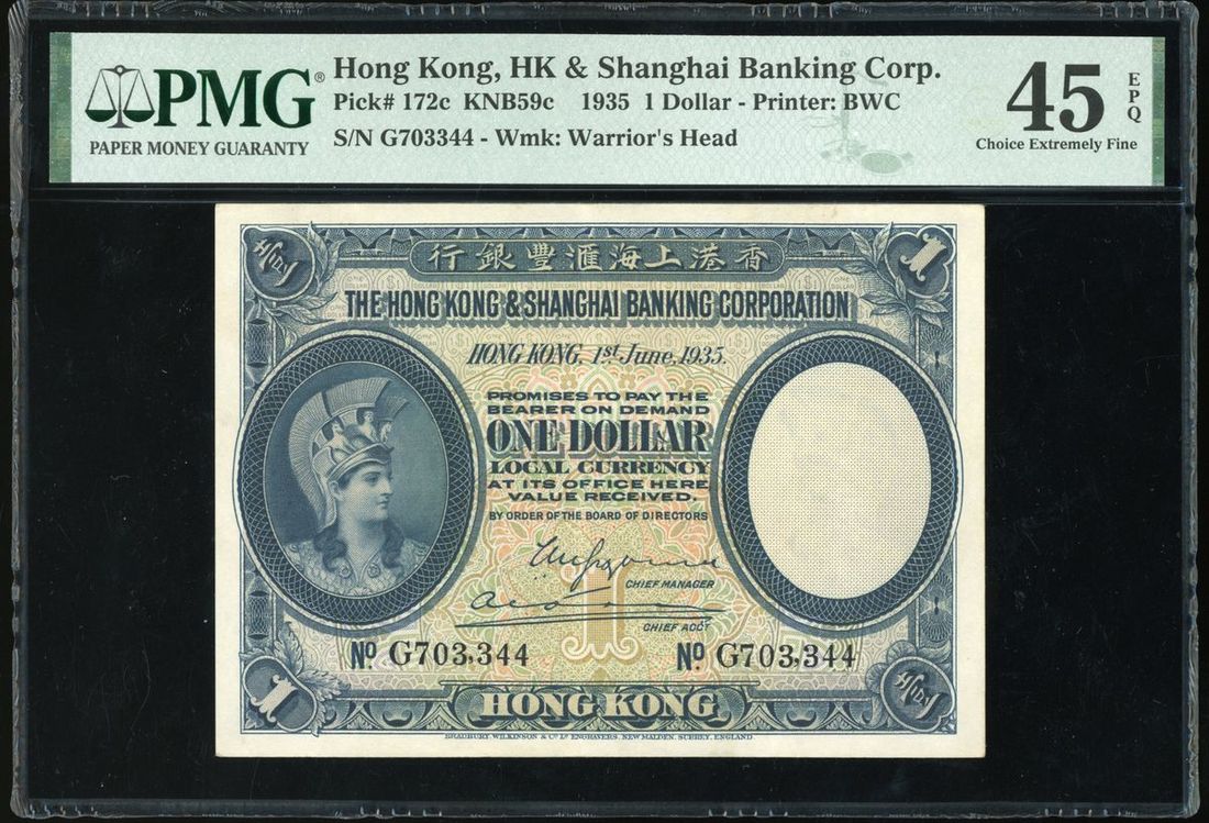 1935年匯豐銀行壹圓,編號G703344,PMG 45EPQ