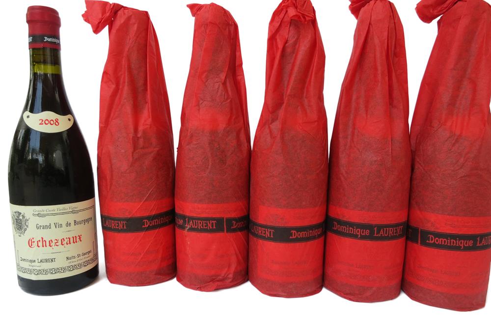 "Echézeaux, Dominique Laurent, 2008Grand Cru Vieilles Vignes. Côte de Nuits.Pristine condition.6 bottles (75cl).The Wine Advocate June 2010, 92-93 points“Comprising five barrels from four different growersin Poulaillieres, Les Treux, Grands Echézeaux, andEchezeaux du Dessus – but in total representing less thanhalf of the volume he produced from 2006 – Laurent’s2008 Echézeaux Vieilles Vignes features fresh rhubarband red cherry as well as singed, vanilla- and cocoapowder-tinged caramelized pit fruits and baked goods.The tension between fresh berry tartness and caramelizedconfection; between richness and vivacity, is uncannilysynergistic. A creamy richness of texture adds allureand underlying suggestions of peat and tobacco furthercomplexity. The finish here is ravishing and irresistiblyinsistent that I take another sip … and another. As winsomeas this is – especially for its vintage – it harborsenergy to take it through at least 15 years of excellence.”"