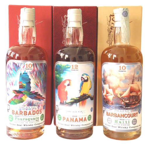 Barbados 2004 Fine Old Rum by Silver Seal. Aged 10 years. Bottled by Silver Seal in 2014. One of 330 bottles. 50%, 70cl. Panama 2001 Fine old Rum by Silver Seal. Aged 12 years. Bottled by Siver Seal in 2013. One of 248 bottles. 46%, 70cl. Barbancourt 2004 Fine Old Rum by Silver Seal Aged 10 years. Bottled by Silver Seal in 2014. One of 333 bottles. 50%, 70cl.