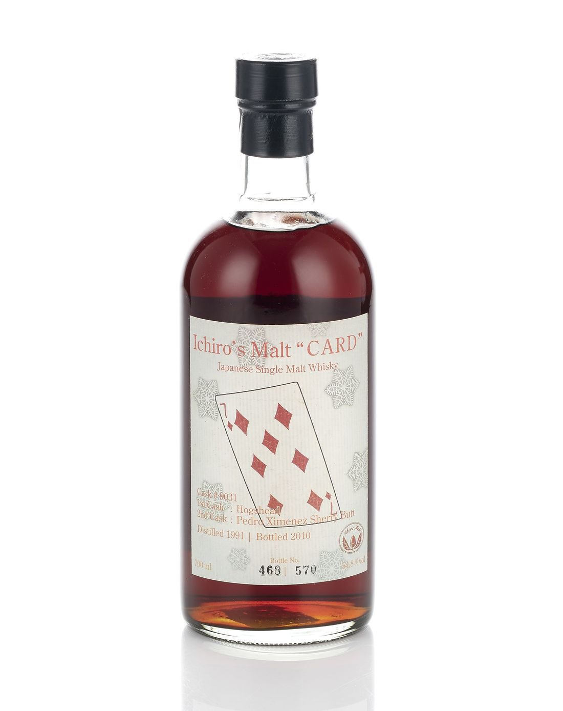 Bottle number 468 of 570. Cask no. 9031, 1st Hogshead, 2nd Pedro Ximenez Sherry Butt. Good label. 700ml. Single Malt., 54.8% volume.