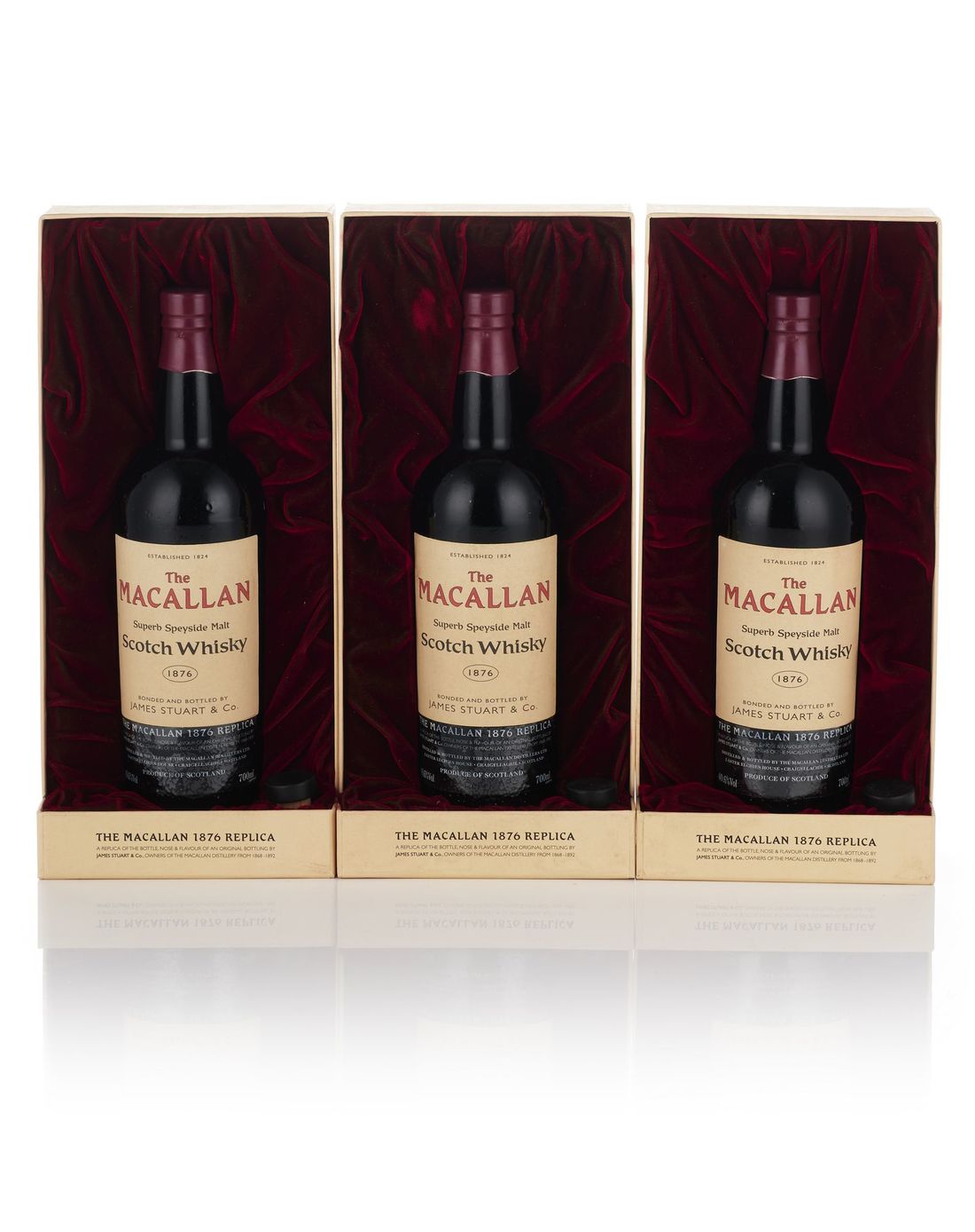 A replica of the bottle, nose and flavour of an original bottling by James Stuart & Co., owners of the Macallan from 1868-1892. In original cartons. Good label. Level: top shoulder. 700ml. Single Malt., 40.6% volume.