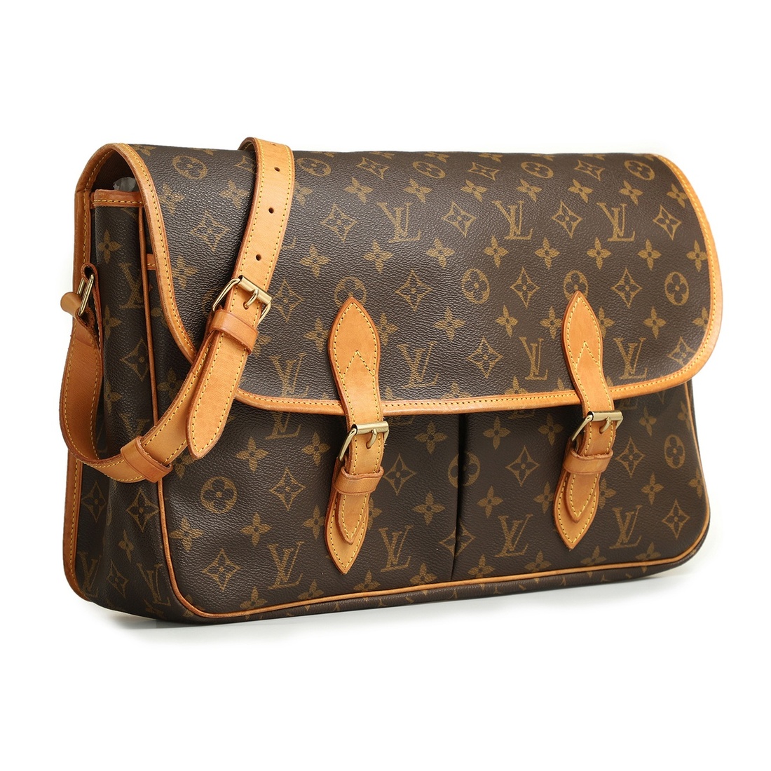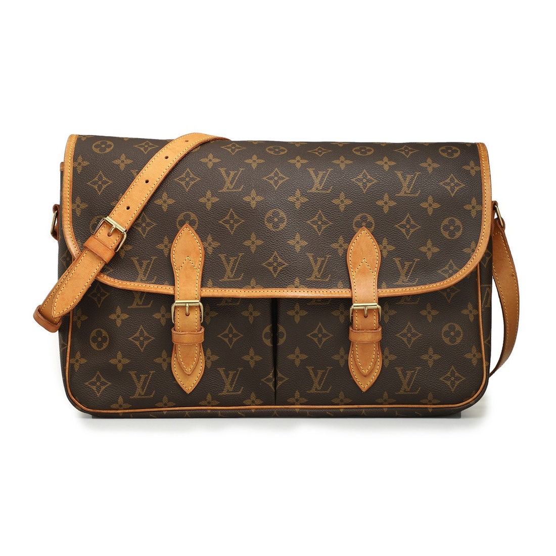 A BROWN MONOGRAM CANVAS GIBECIÈRE GM WITH GOLDEN BRASS HARDWARE
