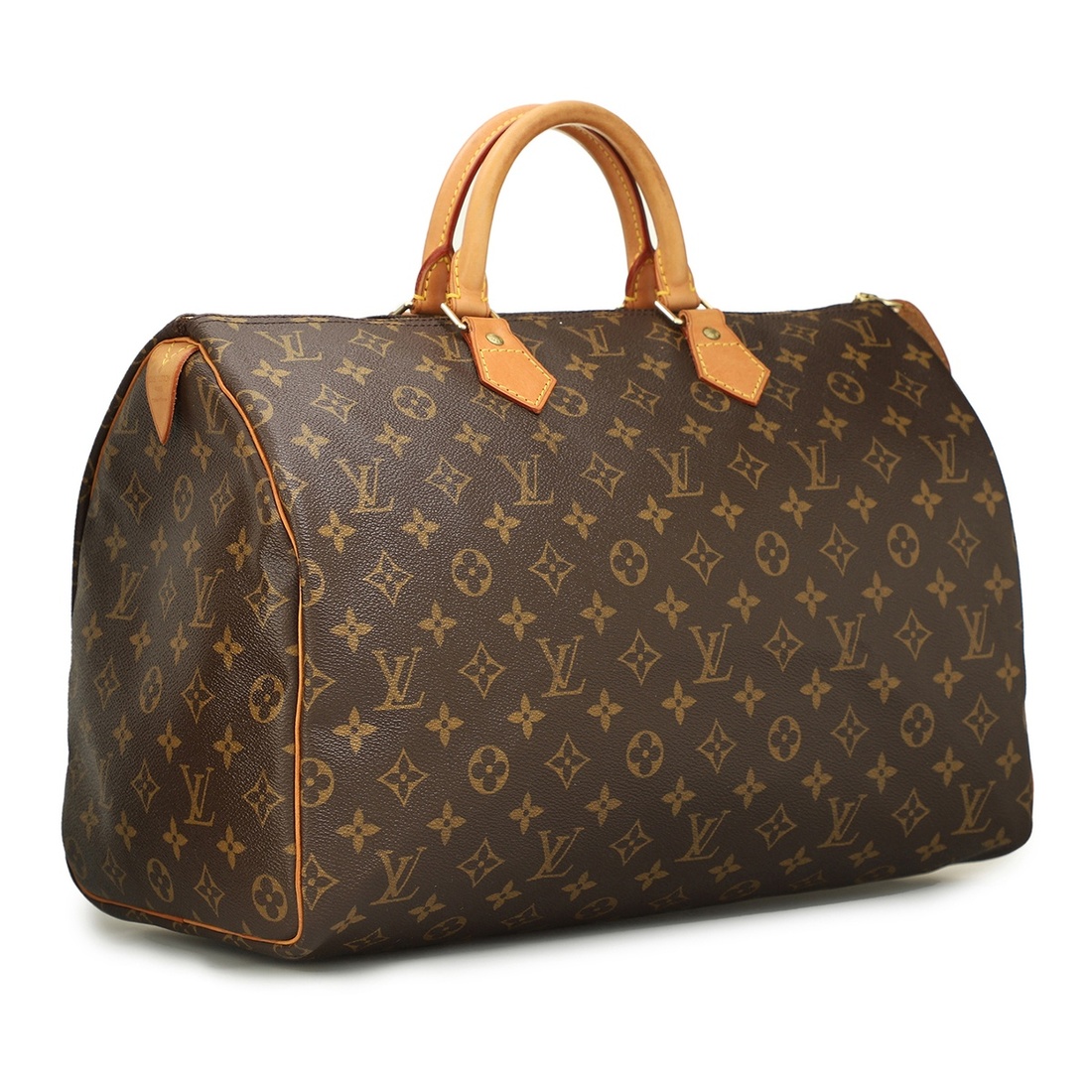 A BROWN MONOGRAM CANVAS SPEEDY 40 WITH GOLDEN BRASS HARDWARE