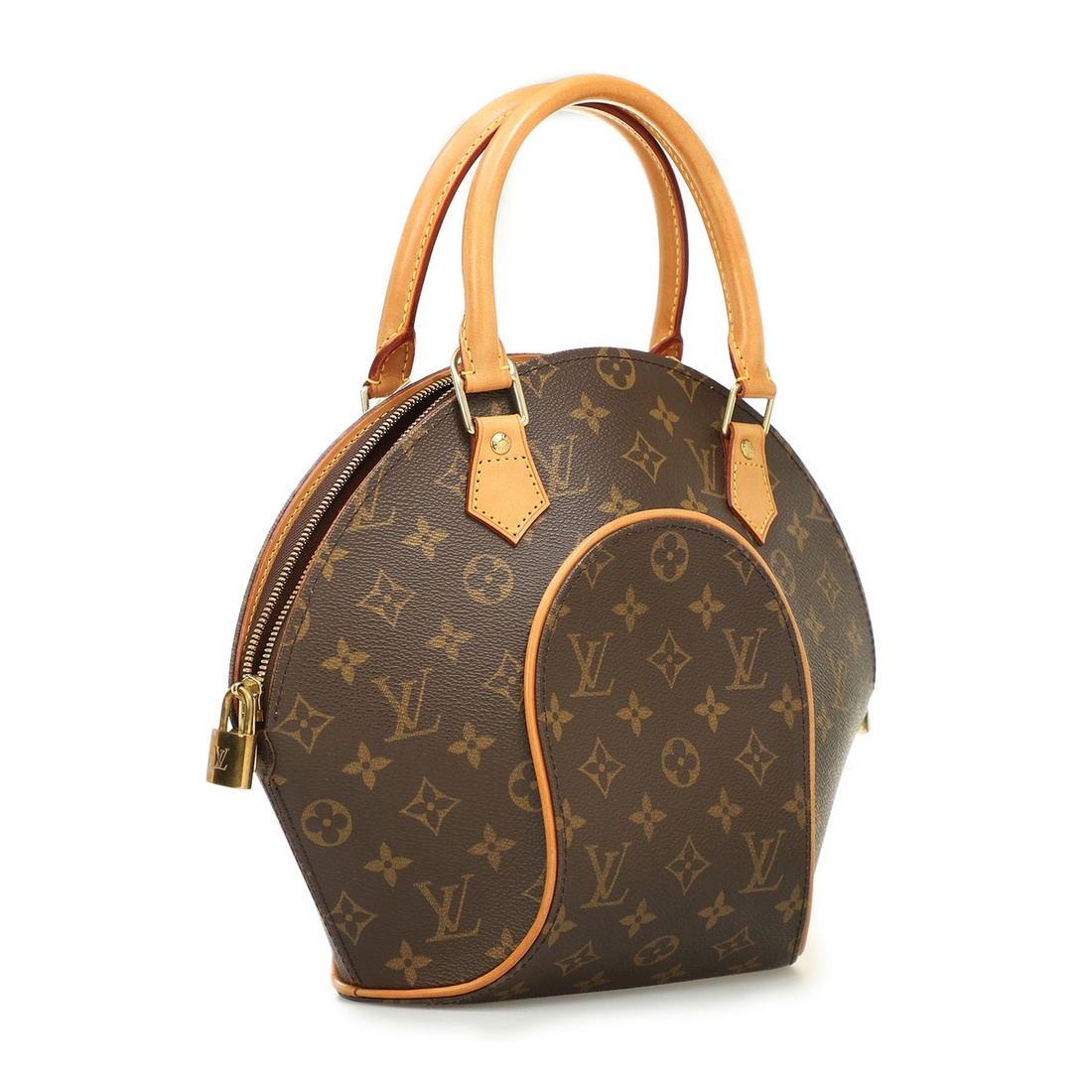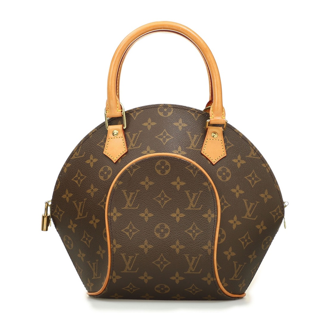 A BROWN MONOGRAM CANVAS ELLIPSE PM WITH GOLDEN BRASS HARDWARE