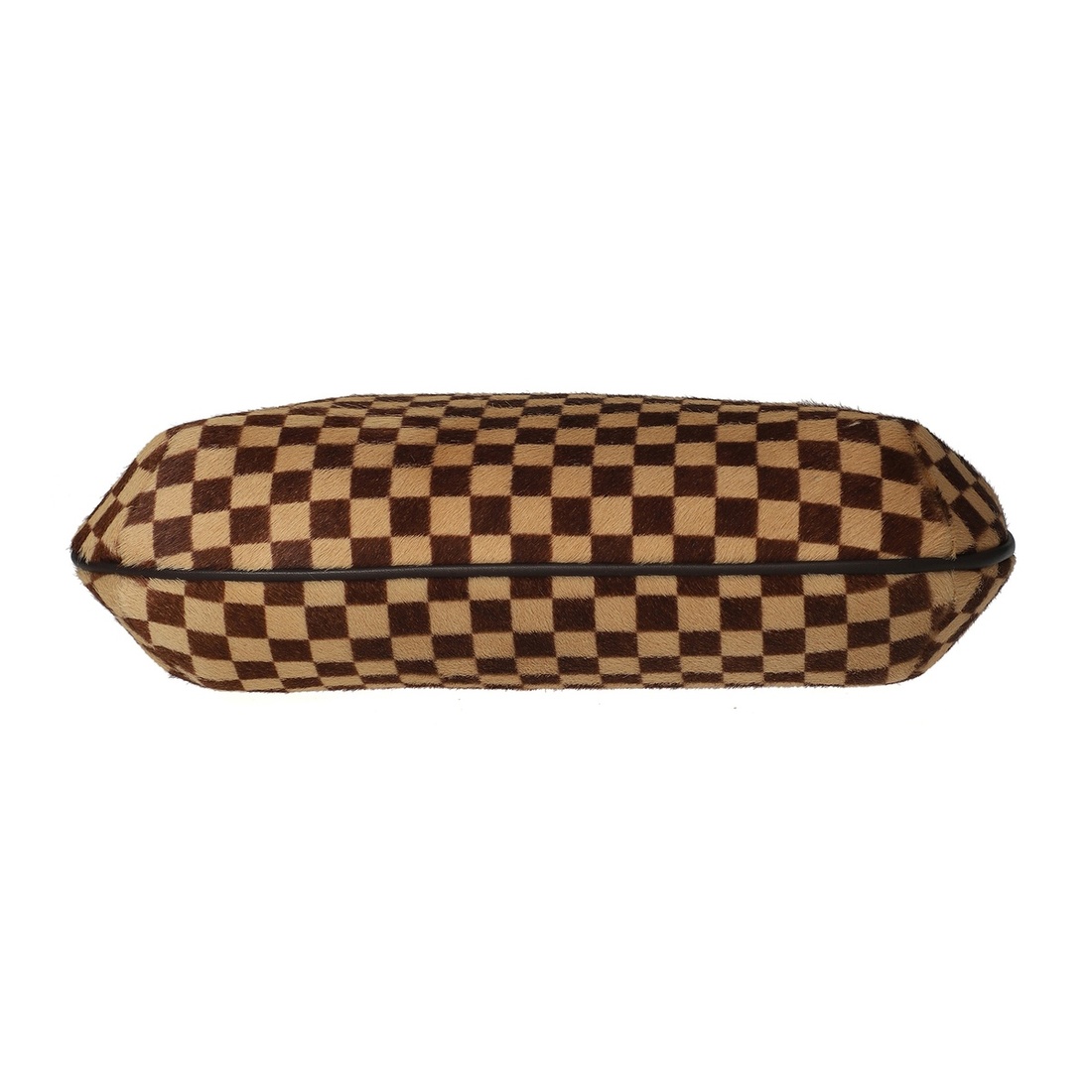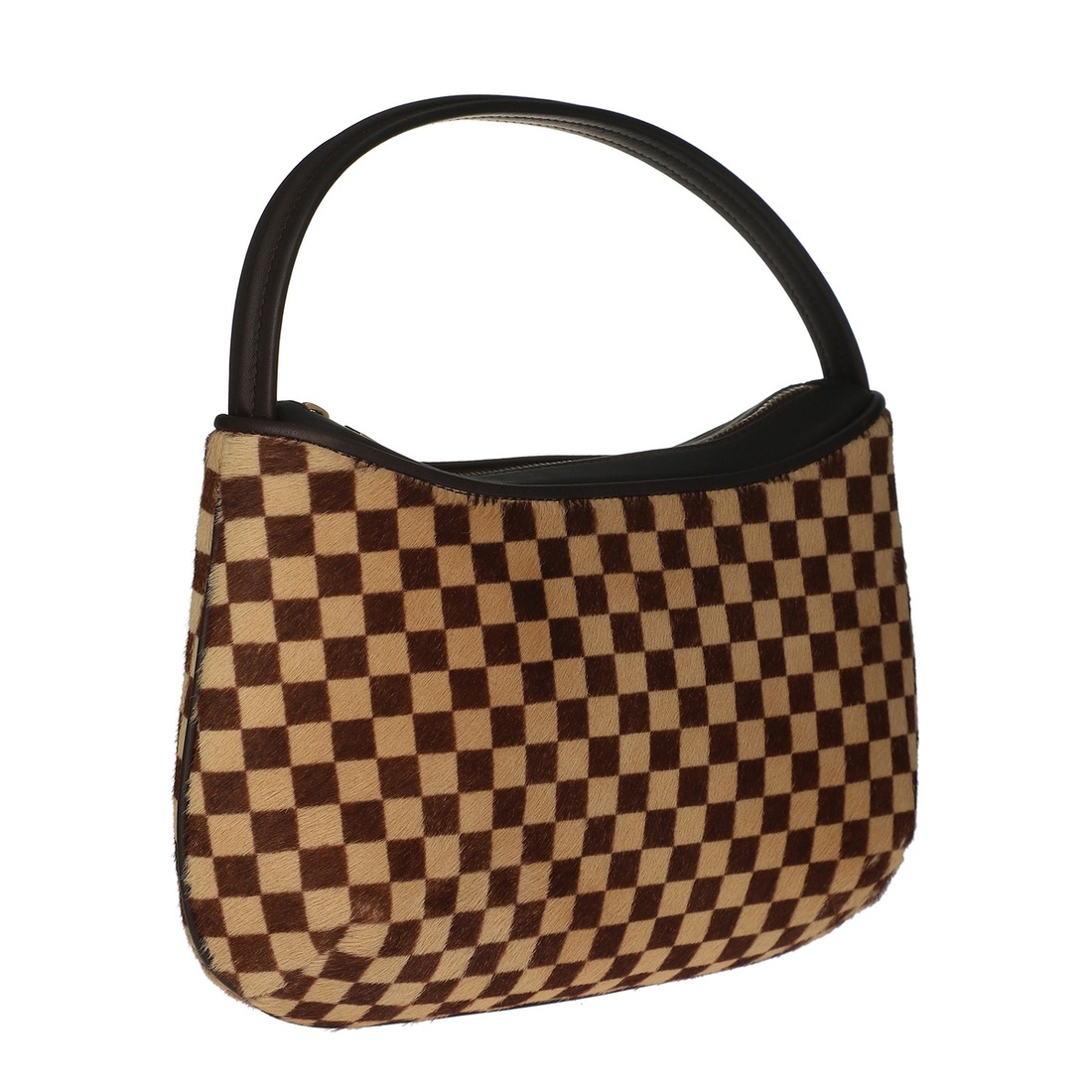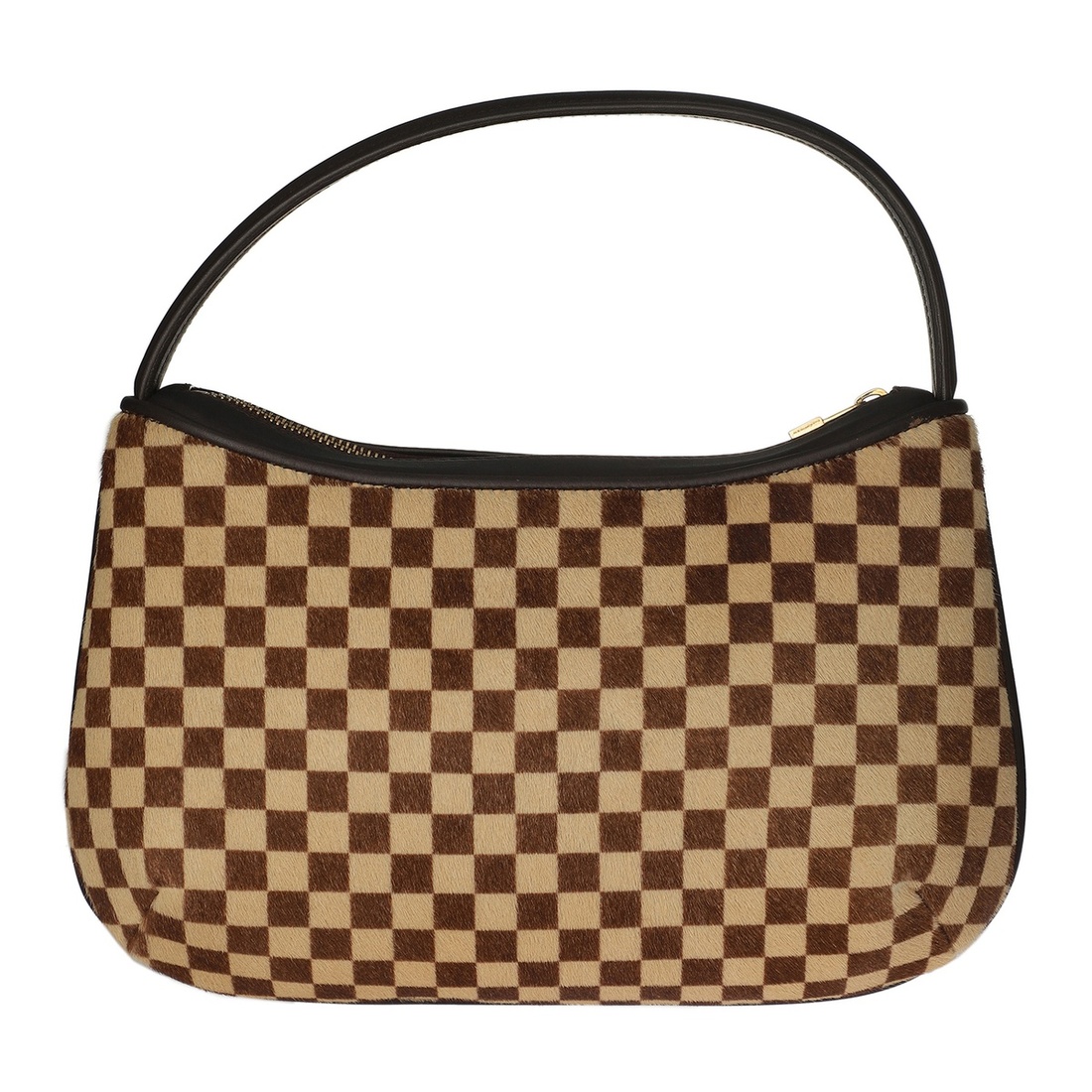 A BROWN/BEIGE DAMIER SAUVAGE PONY HAIR TIGRE WITH GOLD HARDWARE