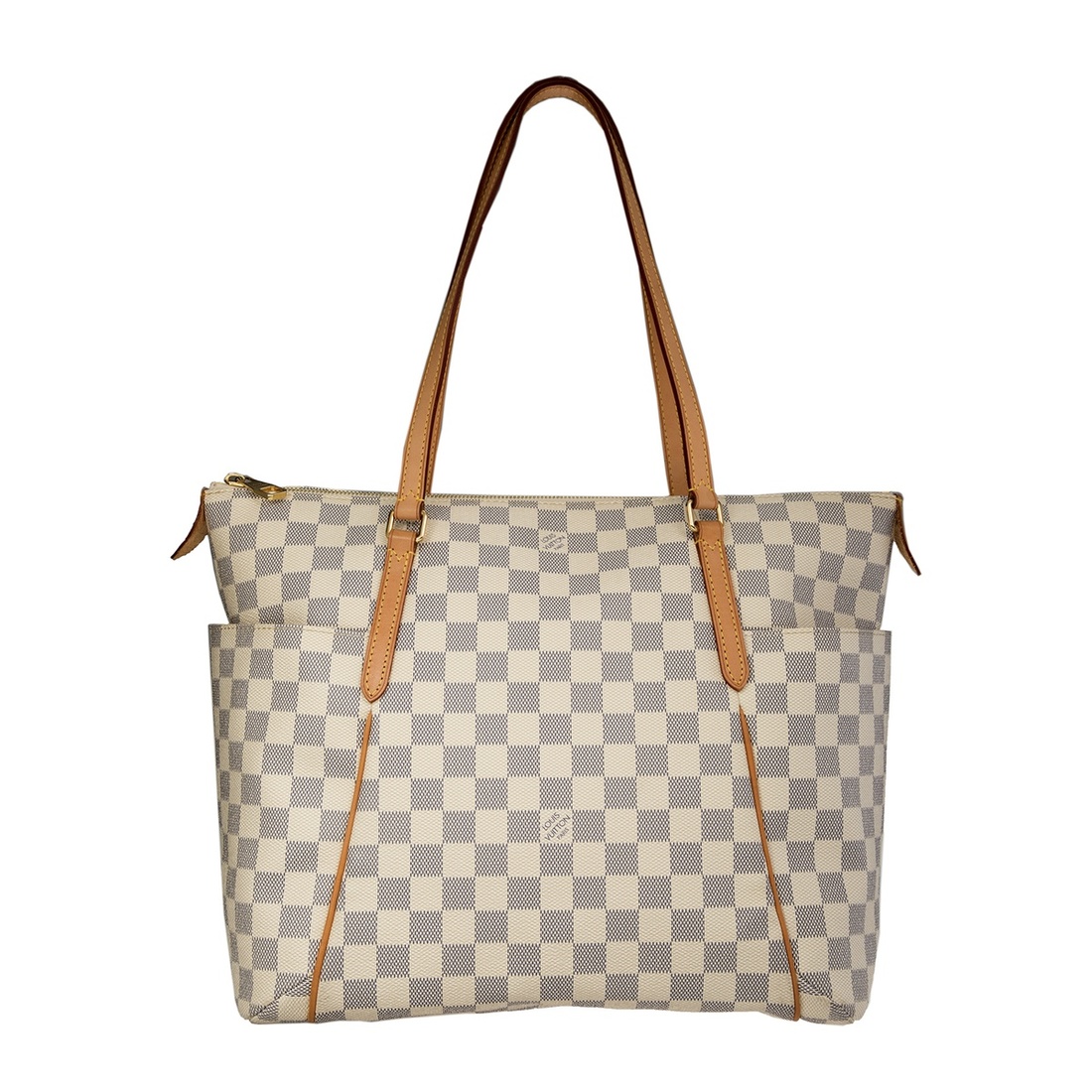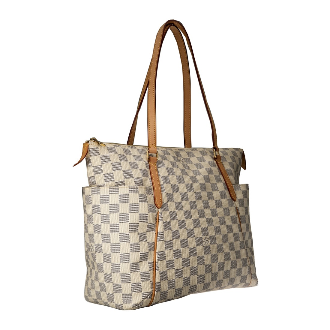 A IVORY DAMIER AZUR CANVAS TOTALLY MM WITH GOLDEN BRASS HARDWARE
