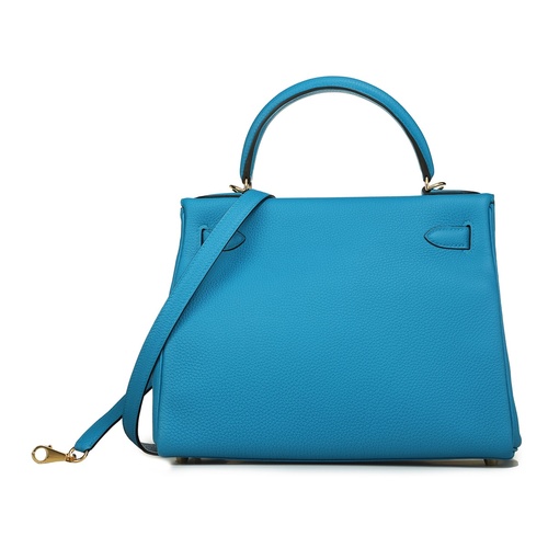 A BLEU ZANZIBAR TOGO LEATHER KELLY RETOURNÉ 28 WITH GOLD HARDWARE