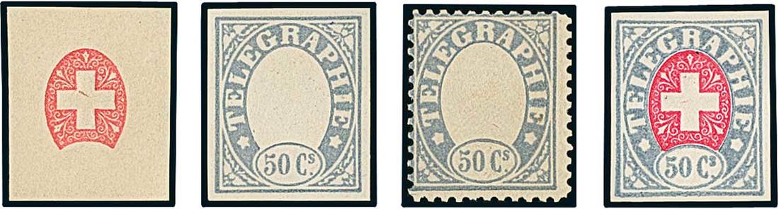 Telegrams, Telegraph & Telephone Stamps - The Professor Shaul Ladany Collection, Part IISwitzerlandTelegraph Stamps1868-74, an interesting assembly comprising 68 proofs, mostly imperforate, with progressive states, multiples up to block of 17, variety of papers, etc. A scarce and difficult group; viewing essential. Photo