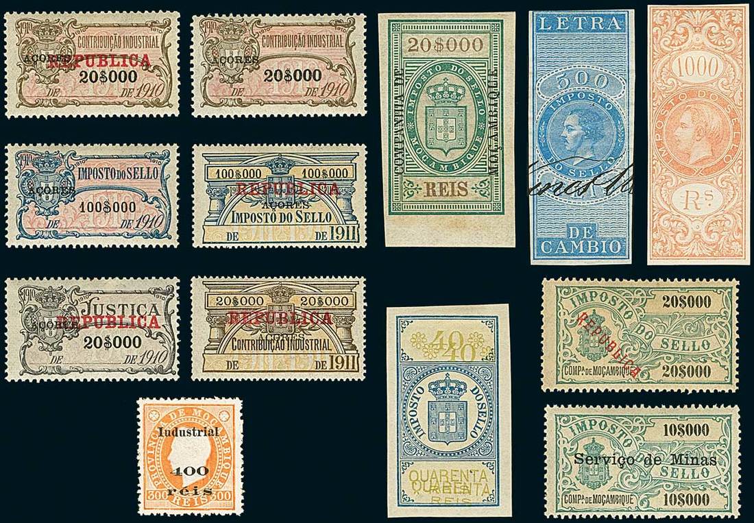 Revenue Stamps The "De Magistris" Collection, Part IIsPortuguese Colonies1861-1930, an outstanding collection, approximately 4,500 stamps, housed in one album containing large pages, with many rarities, comprising General Colonial issues, Angola, Azores, Cape Verde, Guinea, India, Lourenço Marques, Macao, Madeira, Mozambique, Nyassa, St. Thomas and Prince, Timor, including provisionals, high values and many specimen overprints. Viewing recommended for this very difficult lot. Photo