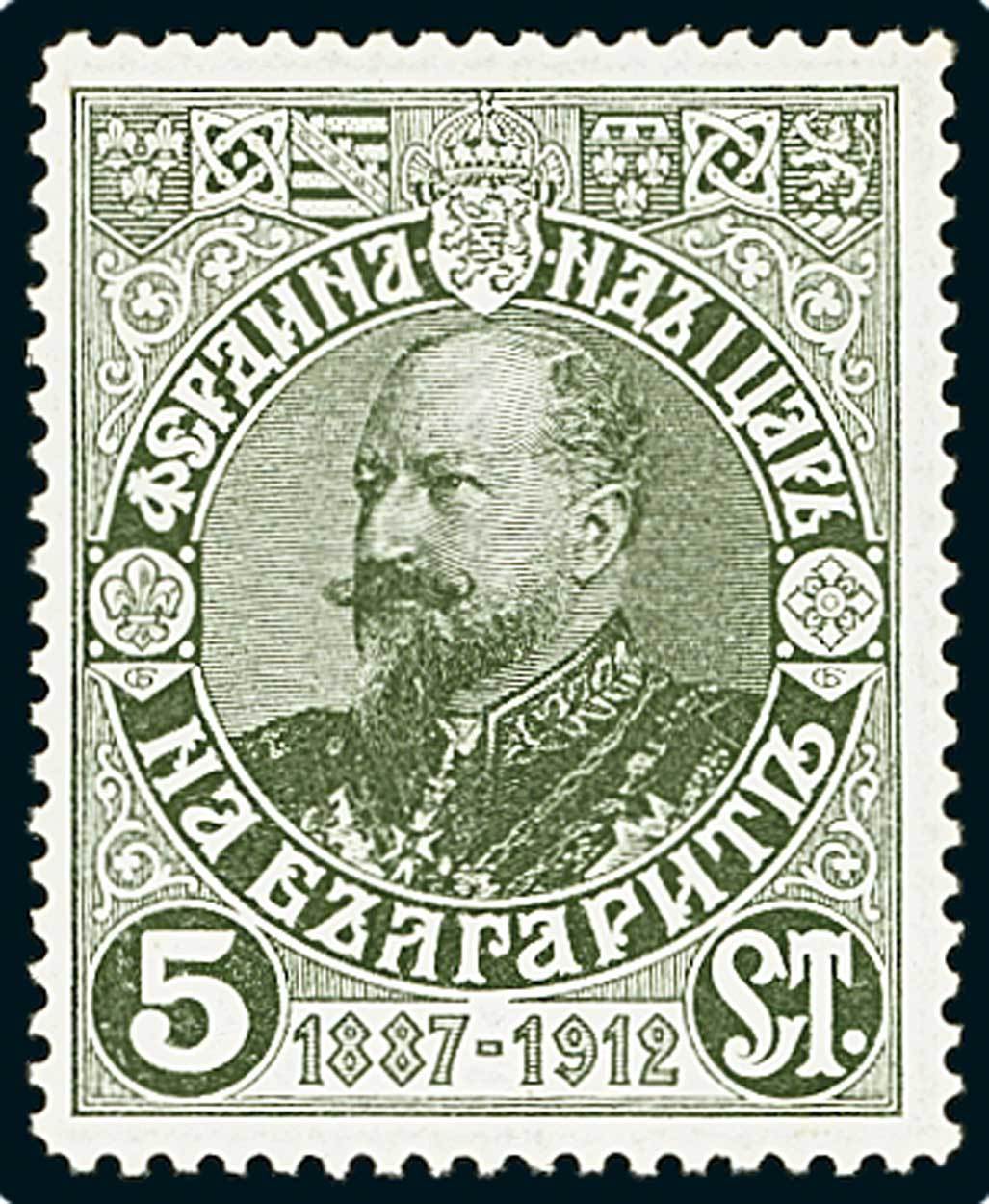 BulgariaLater Issues1912, 5st. pale green instead of dark olive, error of colour, very well centred. Only 500 stamps with this variety were issued, of which only 40 were saved mint. A very rare variety, further enhanced by being in never hinged condition. Cert. Karaivanoff (1949). Mi. 90F; € 1,300+. Photo
