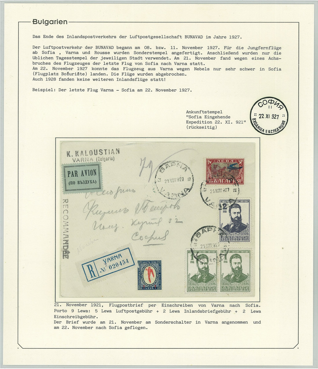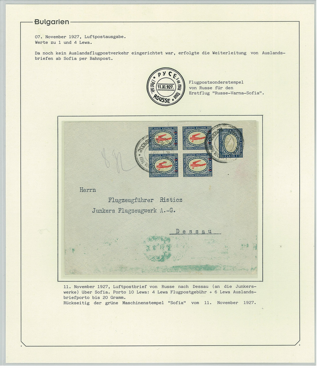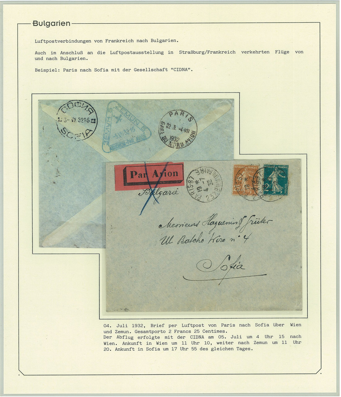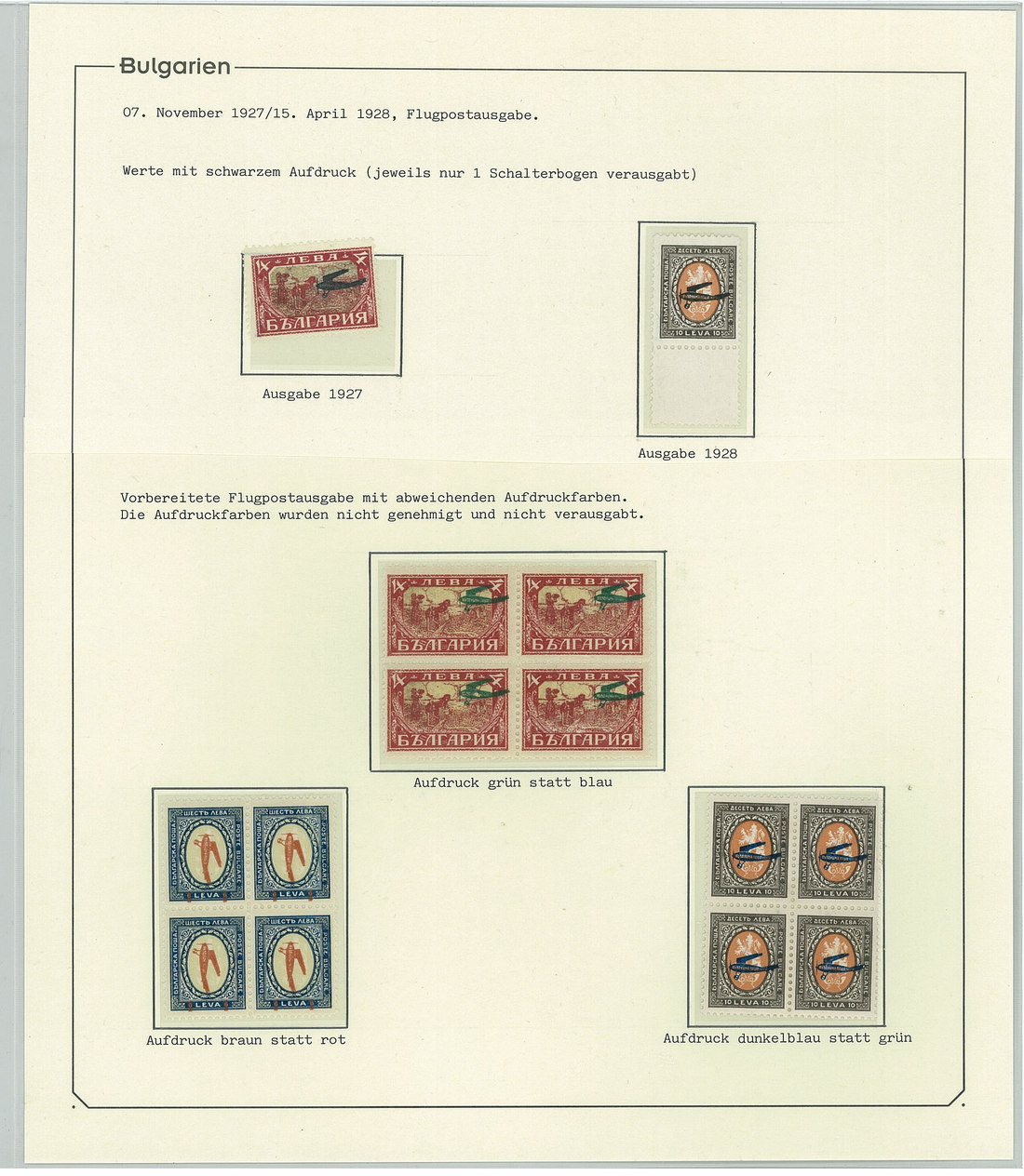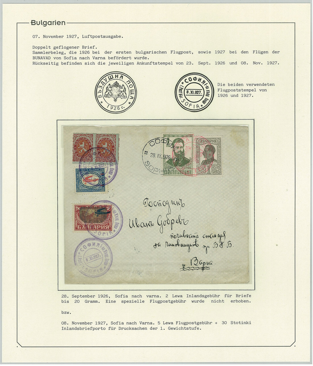 BulgariaLater Issues1927-28, Airmail Issues. An interesting collection with rare 1927-28 official publication featuring scheduled flights and postal rates, stamps with few varieties and 35 covers, mainly being airmails to foreign destinations including unusual examples such as Turkey. Mi. 206-209, I-III.