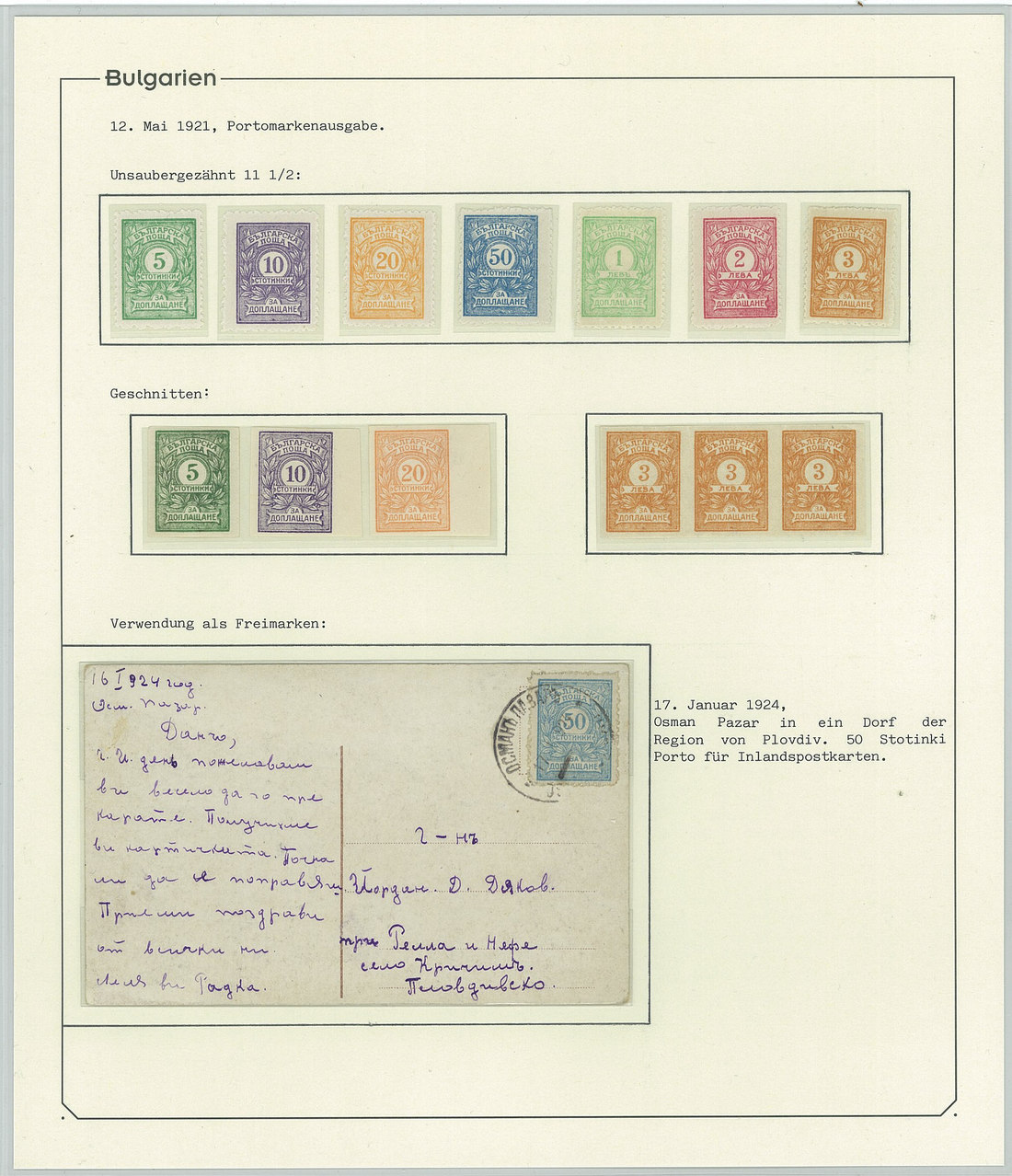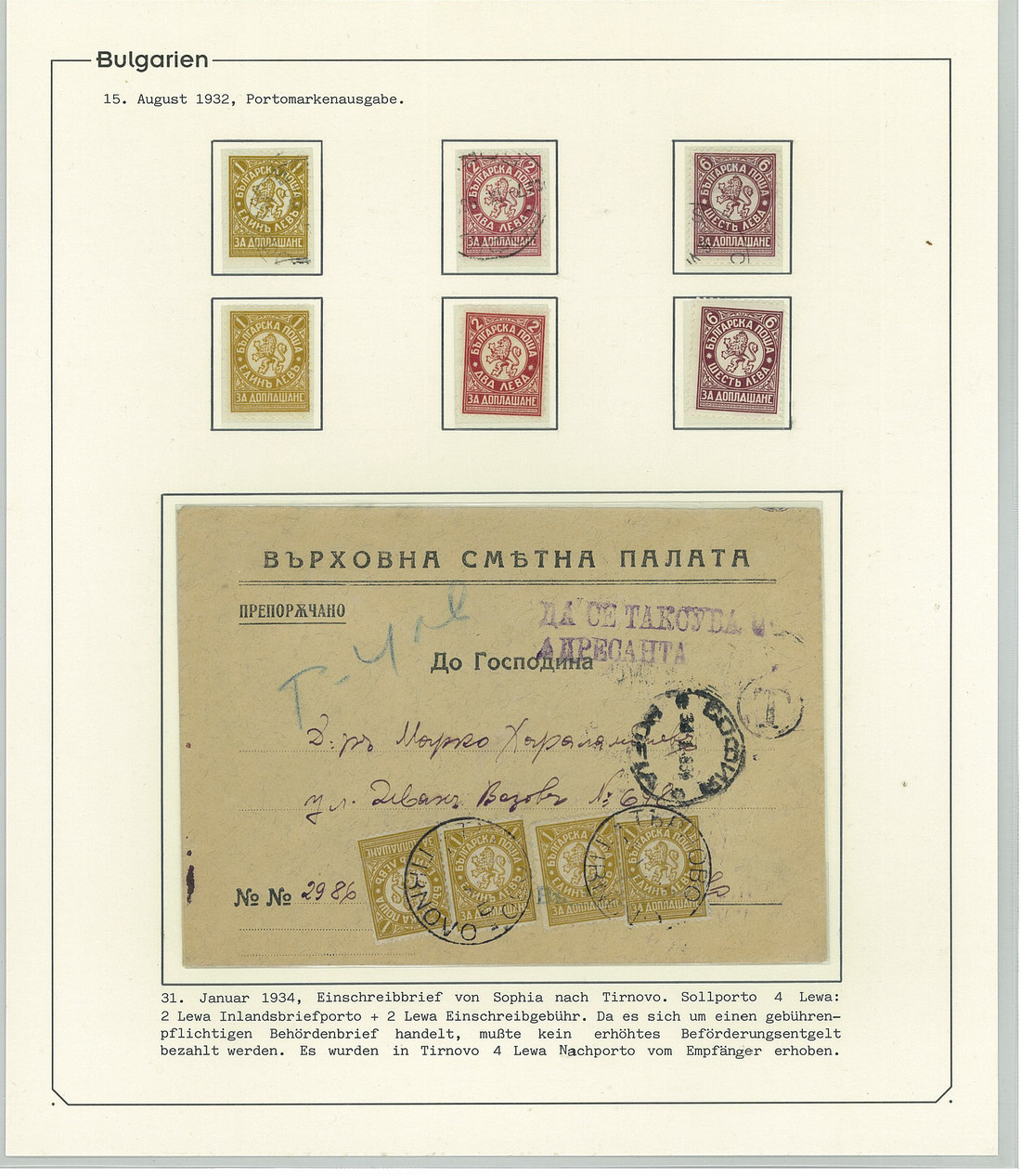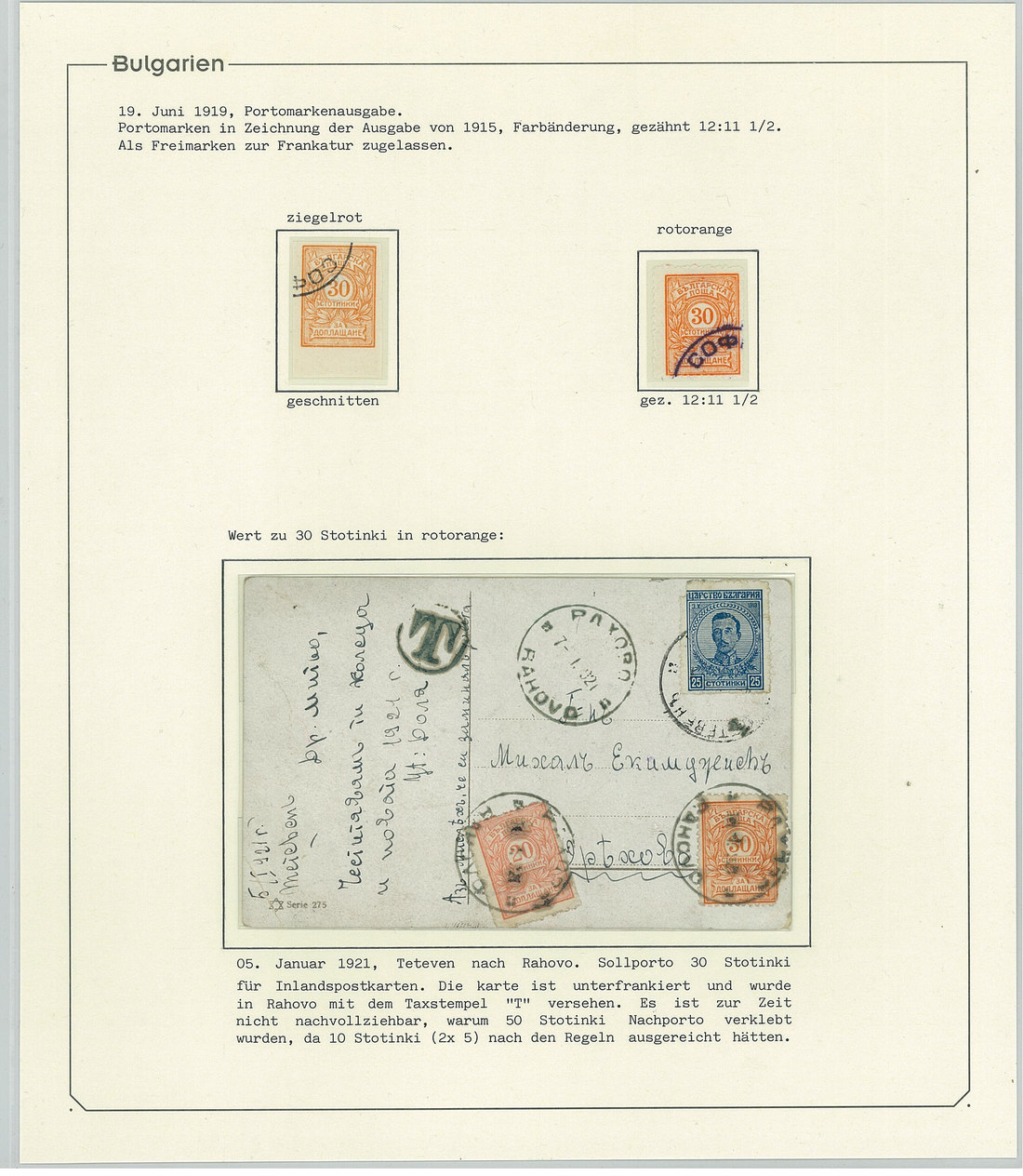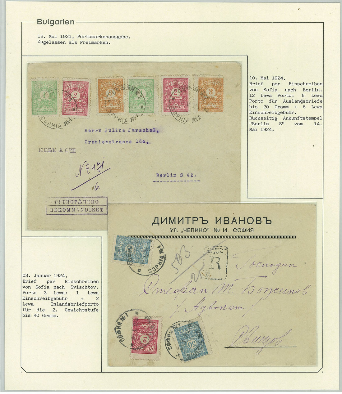 BulgariaLater Issues1919-33, Postage Dues Issues. A comprehensive collection containing stamps, inclusive of multiples, imperforates, varieties, as well as 42 covers, including the 1919-21 issues scarcely used as postage dues, 1921 1l. imperforate (one of just two covers known), the infrequently used 1933 issue, multiple frankings, and attractive combinations with foreign countries. Viewing essential. Photo