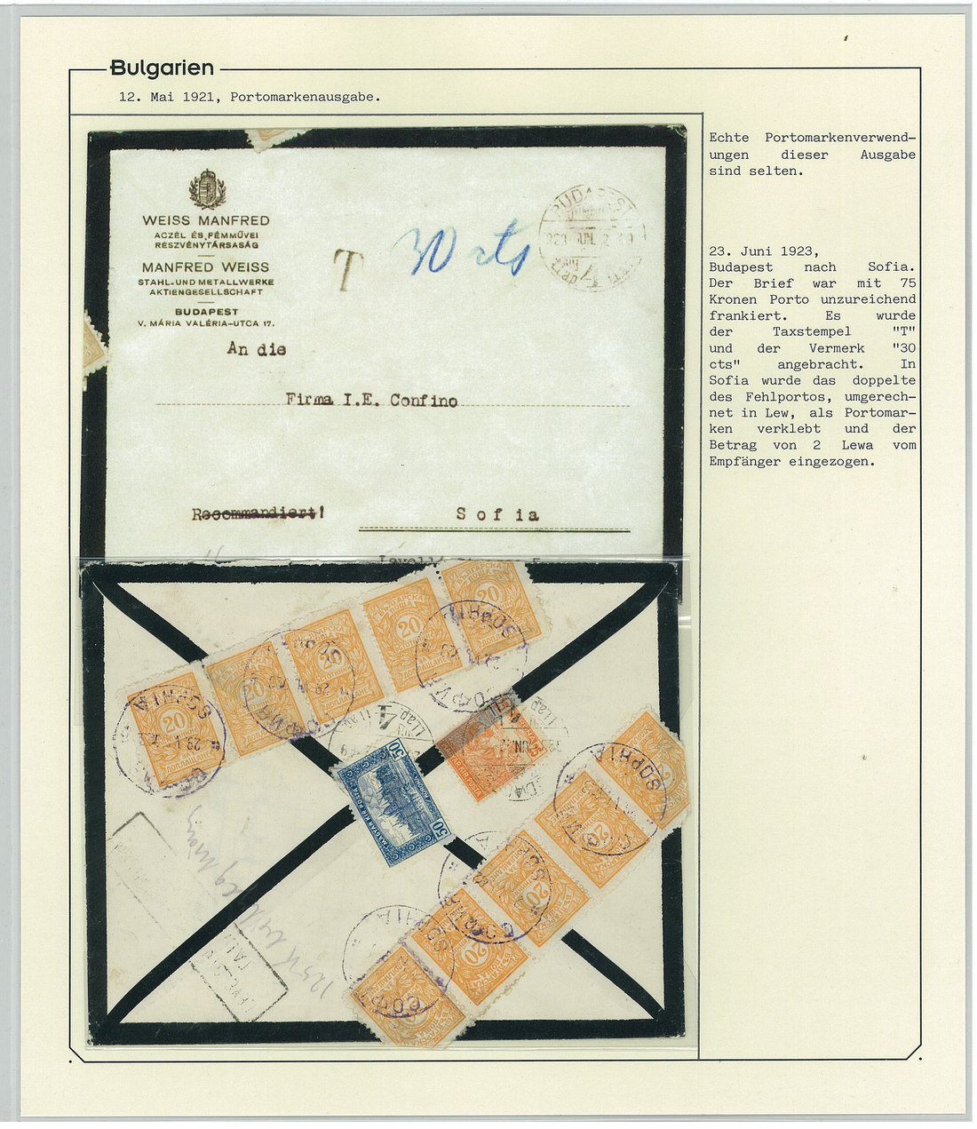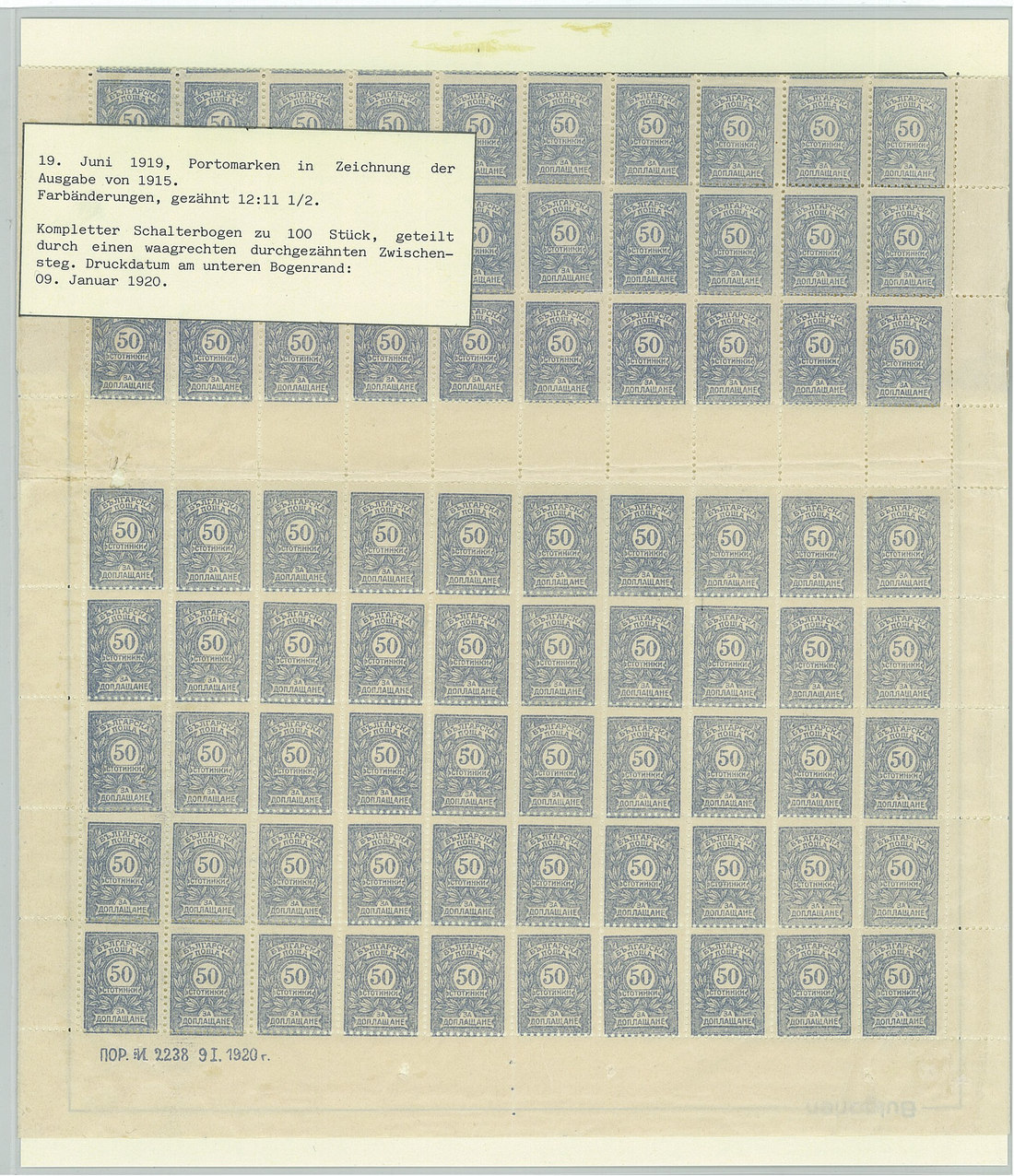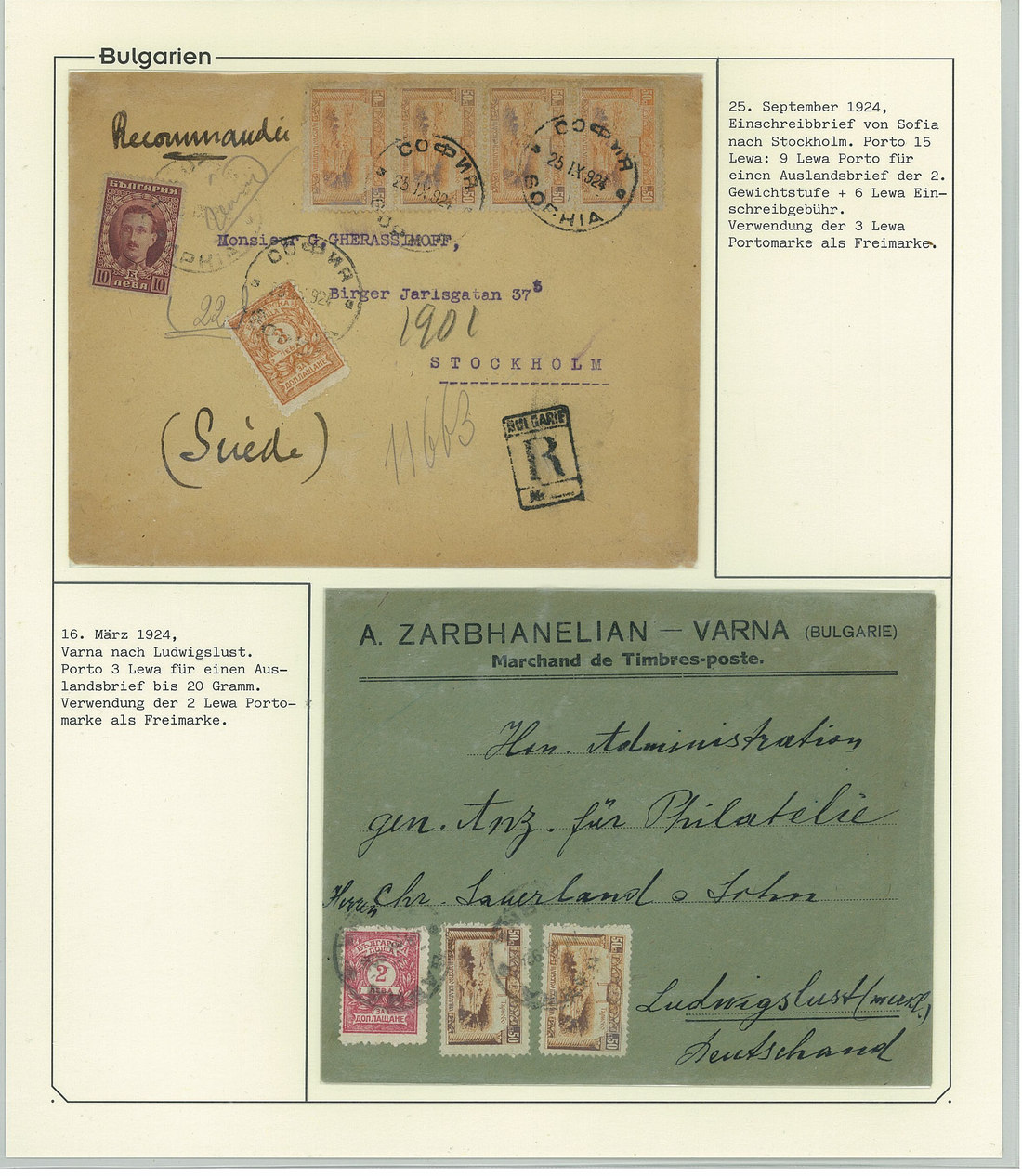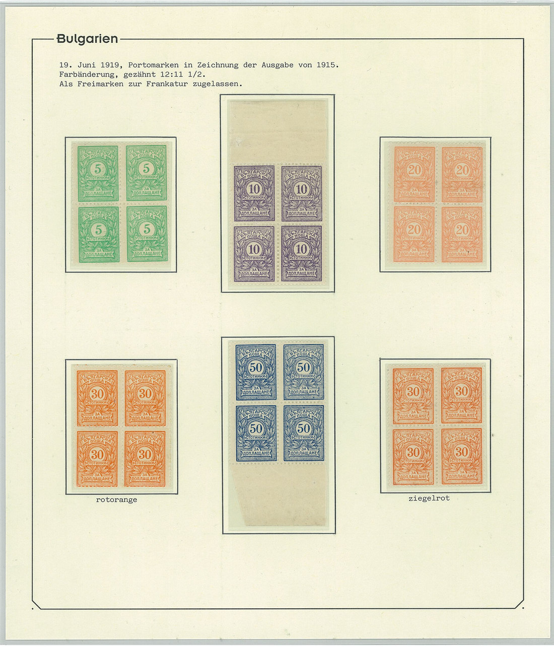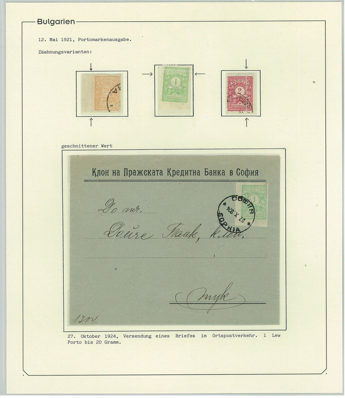 BulgariaLater Issues1919-33, Postage Dues Issues. A comprehensive collection containing stamps, inclusive of multiples, imperforates, varieties, as well as 42 covers, including the 1919-21 issues scarcely used as postage dues, 1921 1l. imperforate (one of just two covers known), the infrequently used 1933 issue, multiple frankings, and attractive combinations with foreign countries. Viewing essential. Photo