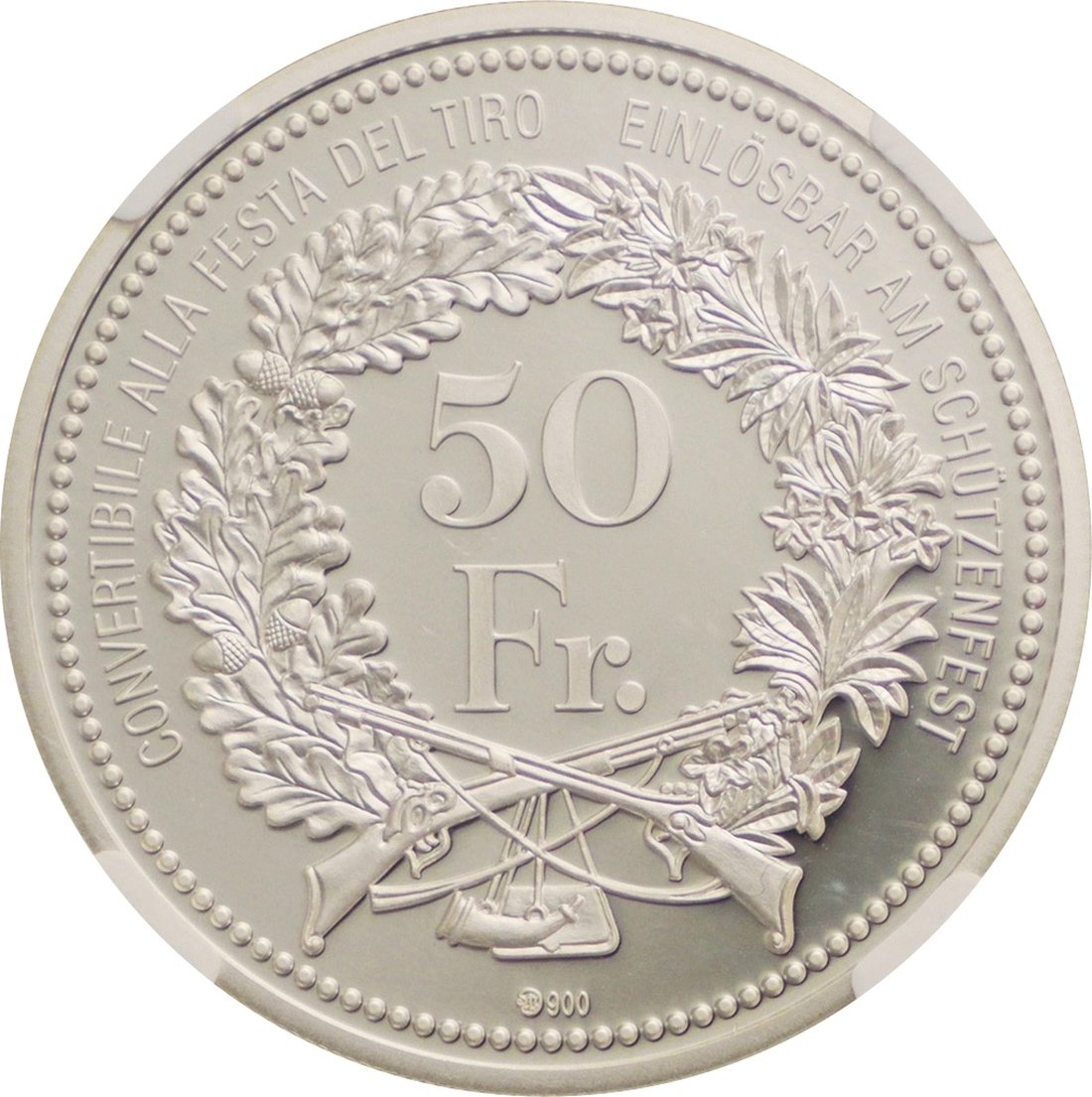 Switzerland, Shooting Festival Ticino 50 Francs Silver Proof 2016, NGC PF70ULTRA CAMEO